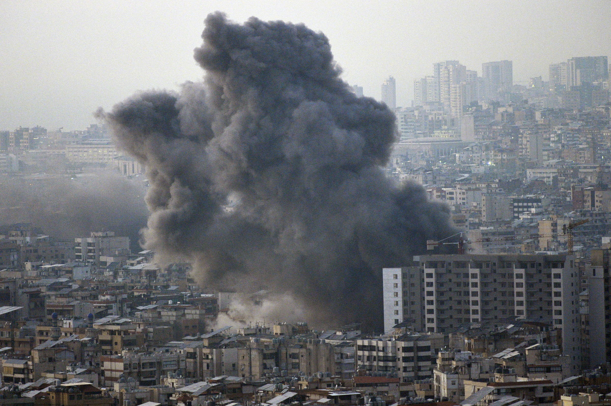 epa11705479 Smoke rises after an Israeli strike in the Dahieh district in Beirut, Lebanon, 06 November 2024. According to the Lebanese Ministry of Health, more than 3,000 people have been killed and over 13,400 others injured in Lebanon since the escalation in hostilities between Israel and Hezbollah. EPA/WAEL HAMZEH