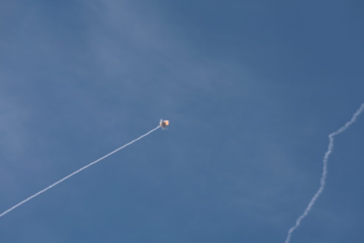 epa11615711 Israel's Iron Dome air defense system intercepts a projectile fired from southern Lebanon over Upper Galilee, northern Israel, 20 September 2024. The Israeli military said about 120 launches were identified crossing from Lebanon into Israeli territory in the areas of Safed, the Upper Galilee and Israeli-annexed Golan Heights. EPA/ATEF SAFADI