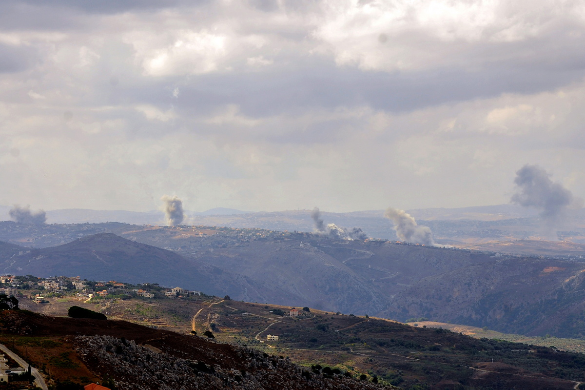 epaselect epa11620780 Smoke billows from the site of Israeli airstrikes near Lebanese villages, as seen from Marjaayoun, southern Lebanon, 23 September 2024. According to the Lebanese National News Agency (NNA), Israeli aircraft have reportedly carried out a number of bombings on communities in the Marjayoun district in the Nabatieh Governorate of Lebanon, including Taybeh, Houla, Tallouseh, Kfarkela, Mays al-Jabal, Khiyam and Bani Hayan. The Israeli military urged civilians in areas where Hezbollah operates to leave, saying they launched 'extensive' airstrikes on Hezbollah targets in Lebanon on 23 September 2024. According to Lebanon's Ministry of Health, at least 182 people have been killed and more than 720 others injured following continued Israeli airstrikes on southern Lebanese towns and villages since 23 September morning. EPA/STRINGER