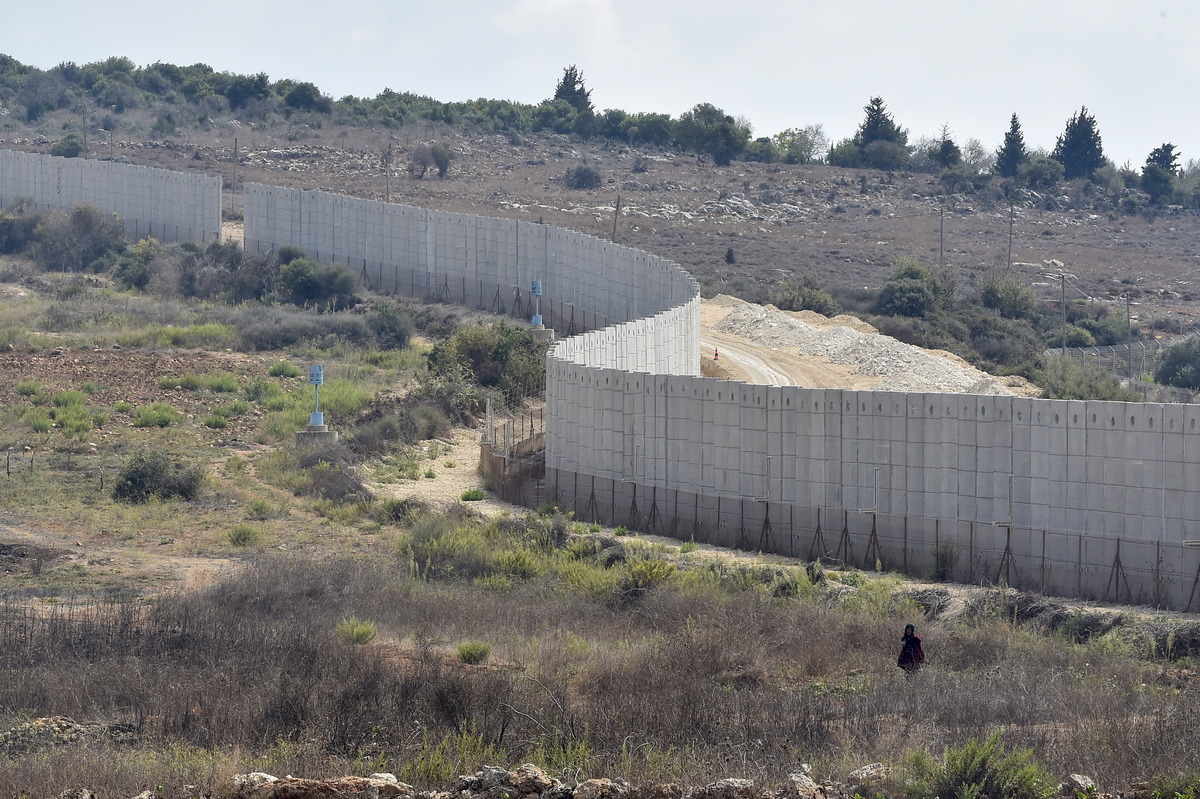 epa10911865 A general view of the wall at the Israeli-Lebanon border, seen from the Dhayra village, southern Lebanon, 10 October 2023. According to Hezbollah, three fighters of the group were killed during Israeli shelling on villages in South Lebanon on 09 October. The Israel Defence Forces (IDF) said tanks struck two observation posts belonging to Hezbollah in response to the rockets launched from Lebanon at Israel. EPA/WAEL HAMZEH