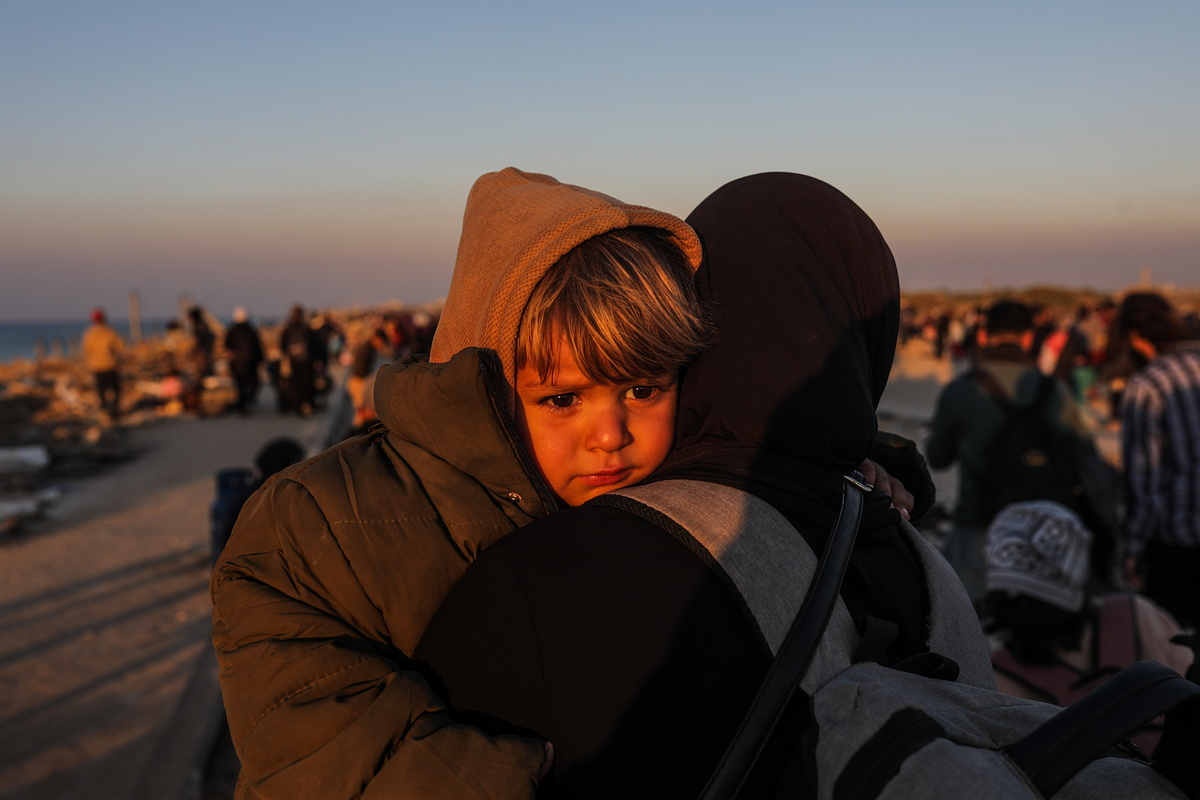 epa11857155 Internally displaced Palestinians make their way from southern to northern Gaza along Al Rashid road, central Gaza Strip, 27 January 2025. Israel and Hamas implemented the first phase of a hostage release and ceasefire deal on 19 January 2025. According to the UN, at least 1.9 million people (or nine in ten people) across the Gaza Strip are internally displaced, including people who have been repeatedly displaced. EPA/MOHAMMED SABER