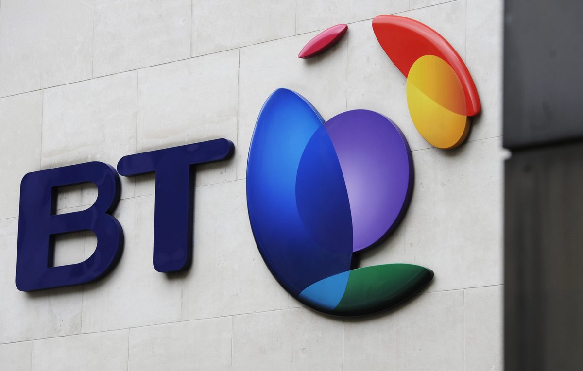 epa04604506 (FILE) A file photo dated 10 May 2013 showing a BT logo on the wall of one of the group's offices in central London. British Telecom on 05 February 2015 said it had agreed to buy mobile carrier EE for 12.5 billion pounds (19 billion dollars). Under the deal, which needs approval by BT's shareholders and Britain's telecom regulator, BT will grant shares to Deutsche Telekom and Orange, both part-owners of EE. Deutsche Telekom will hold a 12-per-cent stake in the expanded BT group, while Orange will own 4 per cent of the company. EE is Britain's leading mobile carrier, with Europe's highest number of 4G customers. It has 24.5 million mobile phone customers and 834,000 broadband customers. BT said its purchase of EE is expected to be completed by March 2016. EPA/FACUNDO ARRIZABALAGA