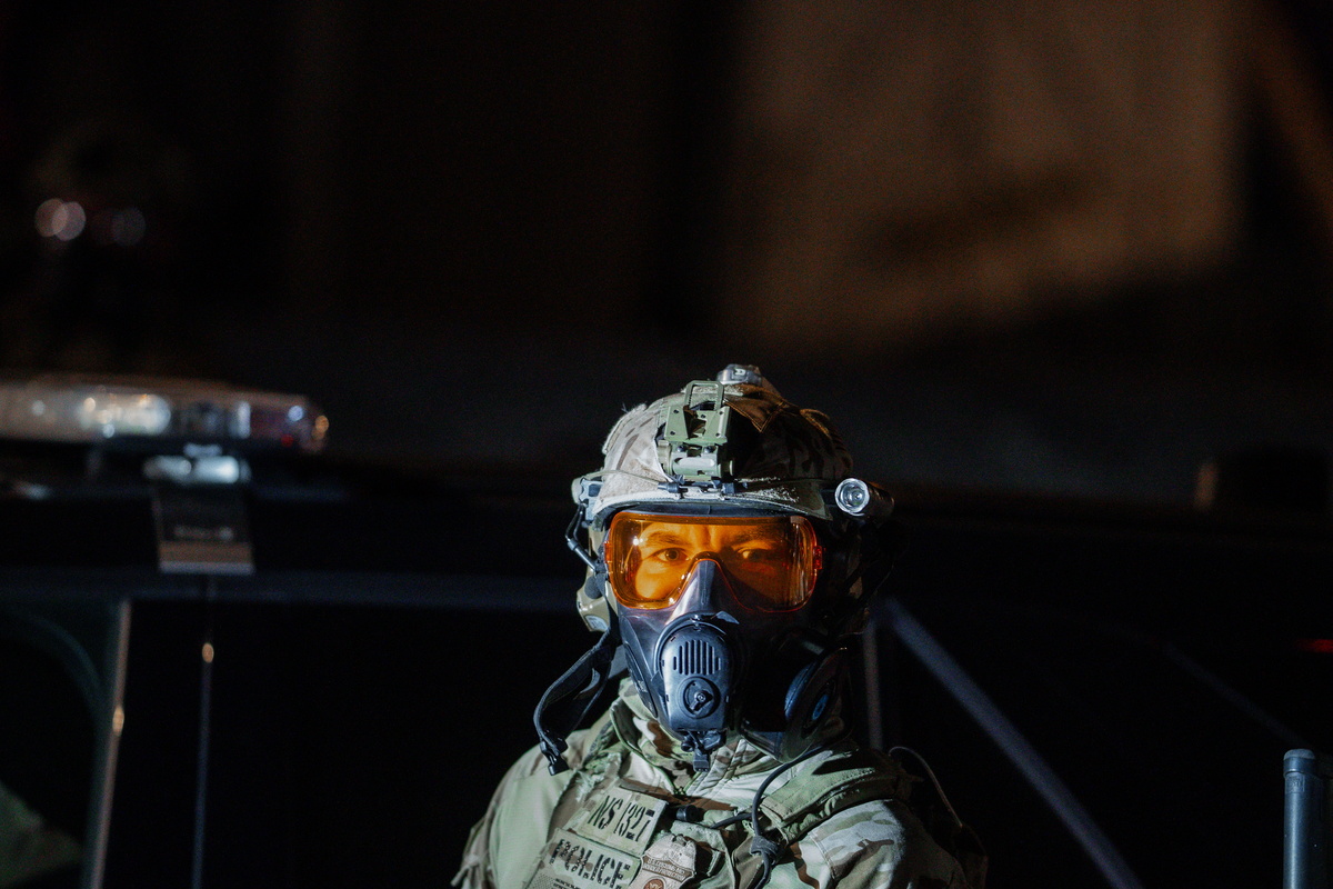 epa12650375 A federal immigration enforcement officer wears personal protective gear during a confrontation with community members that followed federal agents shooting two people in Minneapolis, Minnesota, USA, 14 January 2026. As part of a federal immigration crackdown involving over 2,000 agents from Border Patrol, Immigration and Customs Enforcement (ICE), and Homeland Security Investigations (HSI), an ICE officer fatally shot US citizen Renee Nicole Good in her vehicle during an operation in South Minneapolis on 07 January 2026. EPA/Olga Fedorova