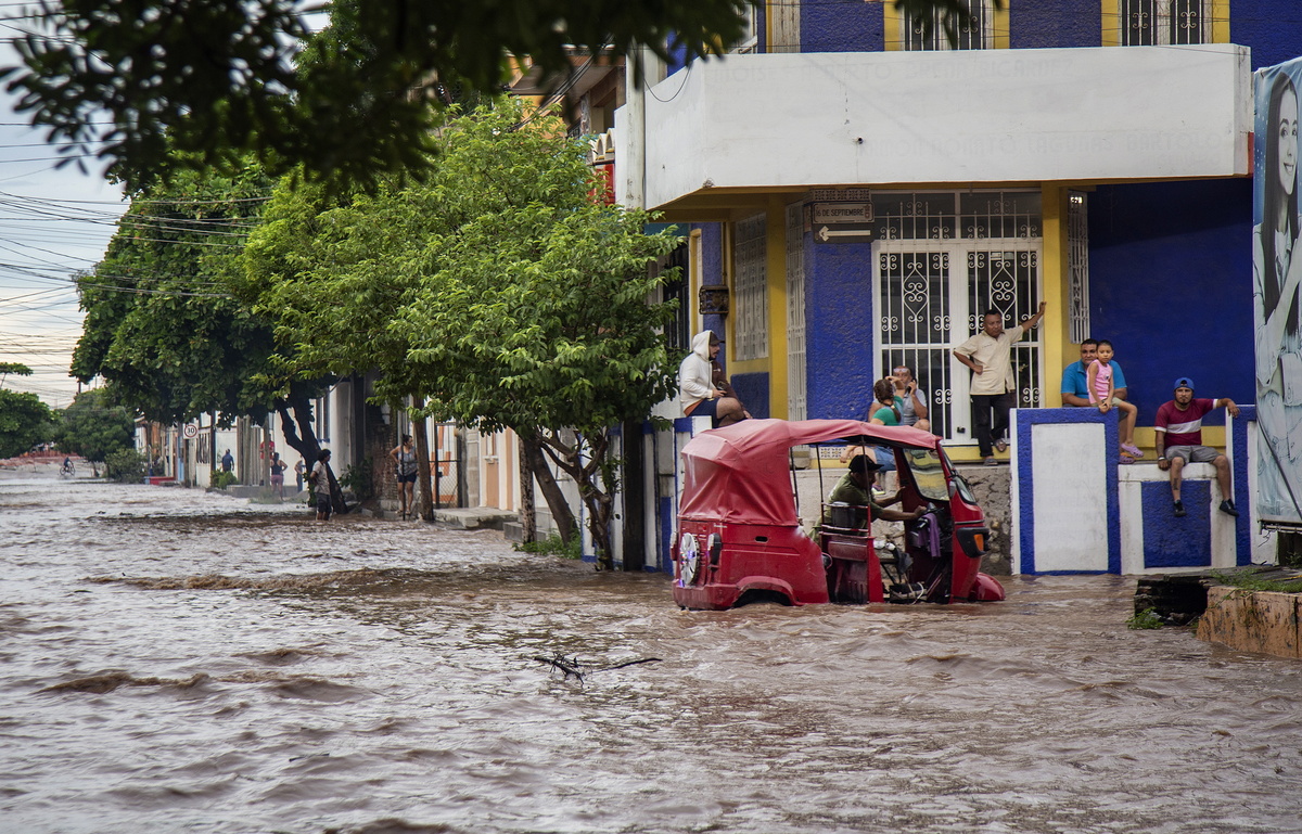 epa12186538 Vehicles travel through a flooded street in Juchitán, Mexico, 19 June 2025. Hurricane Erick, the first of the 2025 season in the Mexican Pacific, made landfall as a Category 3 hurricane and weakened to a tropical storm after passing through the state of Guerrero, in southern Mexico, causing material damage but no casualties. EPA/LUIS VILLALOBOS