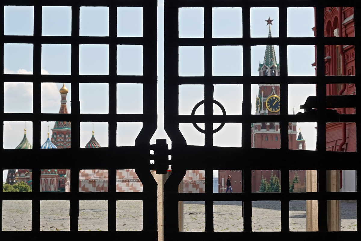 epaselect epa10710732 A person (C-R, rear), seen through a gate, walks in the blocked Red Square in Moscow, Russia, 25 June 2023. Moscow's Red Square remained closed on the day after security in the city was tightened. On 24 June, counter-terrorism measures were enforced in Moscow and other Russian regions after private military company (PMC) Wagner Group's chief claimed that his troops had occupied the building of the headquarters of the Southern Military District in Rostov-on-Don, demanding a meeting with Russia's defense chiefs. Belarusian President Lukashenko, a close ally of Putin, negotiated a deal with Wagner chief Prigozhin to stop the movement of the group's fighters across Russia, the press service of the President of Belarus reported. The negotiations were said to have lasted for the entire day. Prigozhin announced that Wagner fighters were turning their columns around and going back in the other direction, returning to their field camps. EPA/MAXIM SHIPENKOV