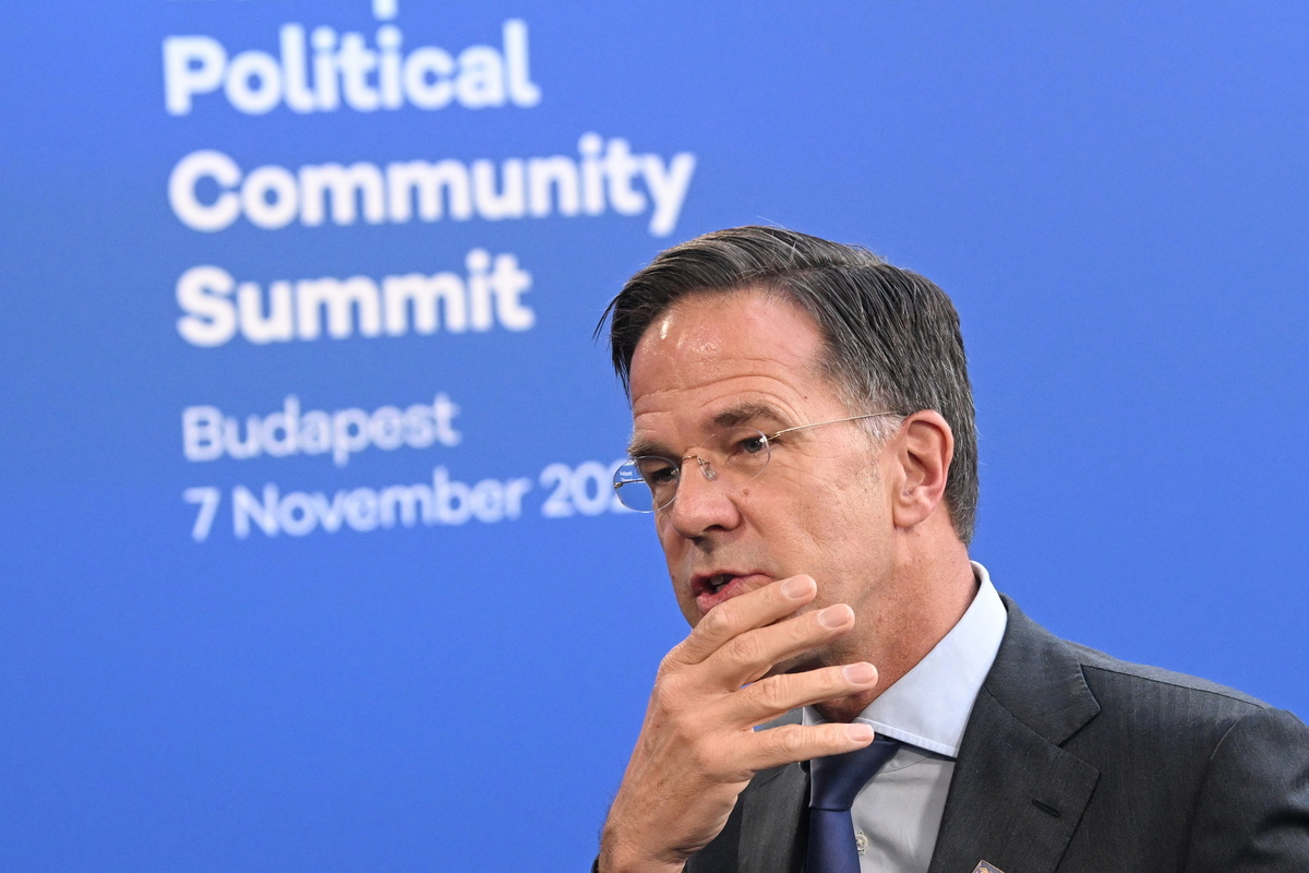 epa11707012 NATO Secretary General Mark Rutte arrives to the 5th summit of the European Political Community (EPC) in Puskas Arena in Budapest, Hungary, 07 November 2024. EPA/SZILARD KOSZTICSAK HUNGARY OUT