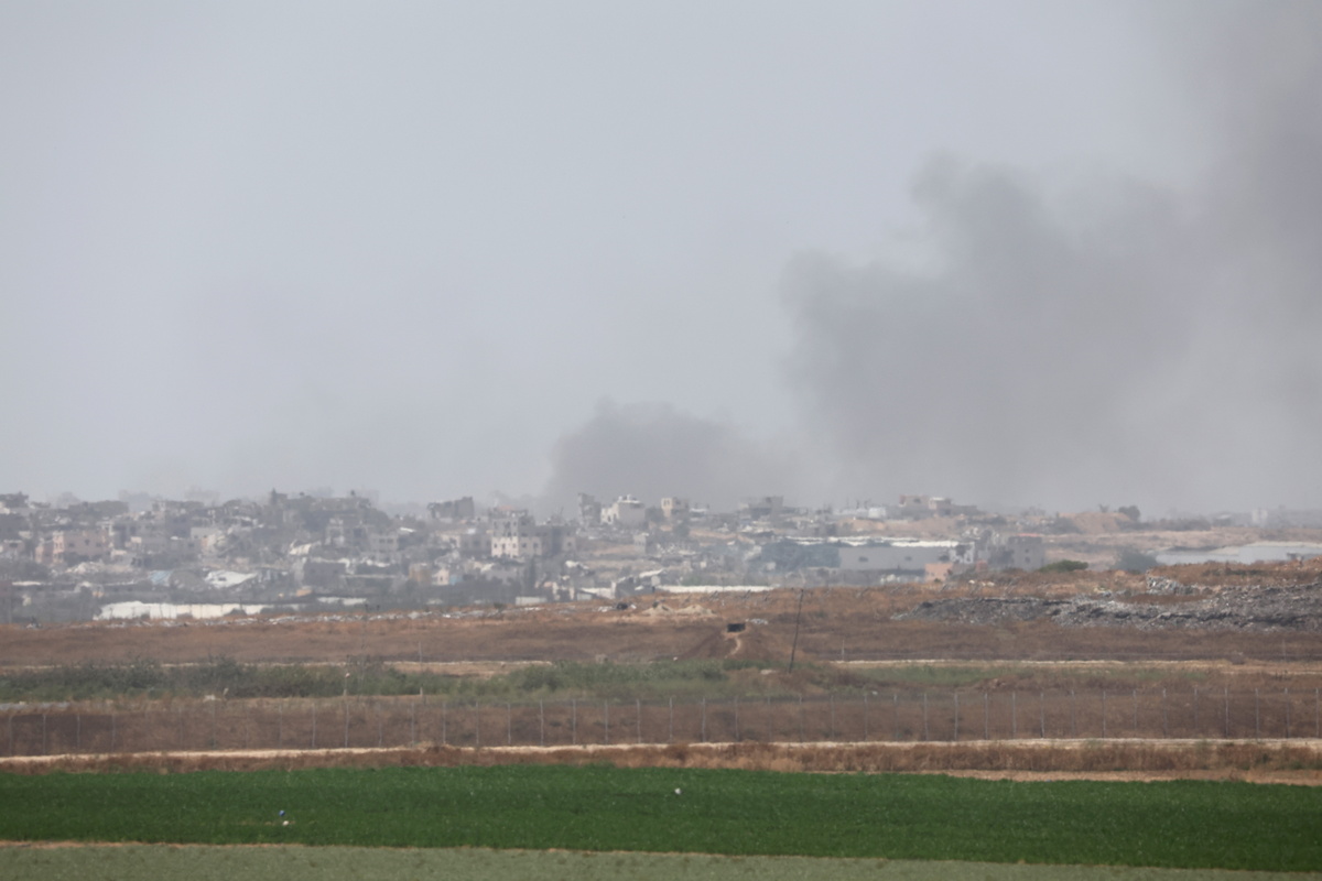 epa11357866 Smoke rises from the Gaza Strip as seen from the Israeli side of the border fence with the Gaza Strip, in southern Israel, 21 May 2024. The Israeli military stated on 21 May that they continued 'operational activities' throughout the Gaza Strip over the past day, where they dismantled some 70 targets. More than 35,000 Palestinians and over 1,400 Israelis have been killed, according to the Palestinian Health Ministry and the Israel Defense Forces (IDF), since Hamas militants launched an attack against Israel from the Gaza Strip on 07 October 2023, and the Israeli operations in Gaza and the West Bank which followed it EPA/ABIR SULTAN