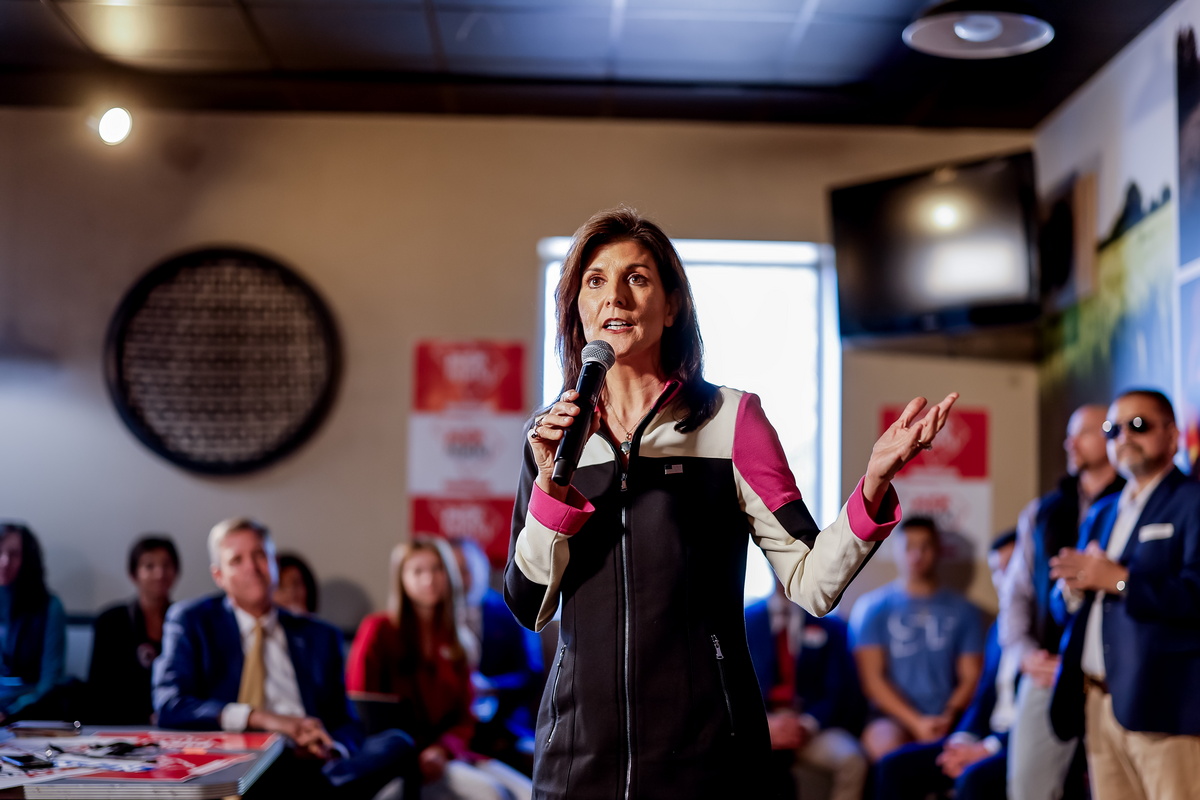 epa11118836 Republican US presidential candidate Nikki Haley participates in a campaign event at Doc's BBQ restaurant in Columbia, South Carolina, USA, 01 February 2024. Haley, the former South Carolina governor, is running against former US President Donald Trump in the South Carolina Republican Presidential Primary on 24 February 2024. EPA/ERIK S. LESSER