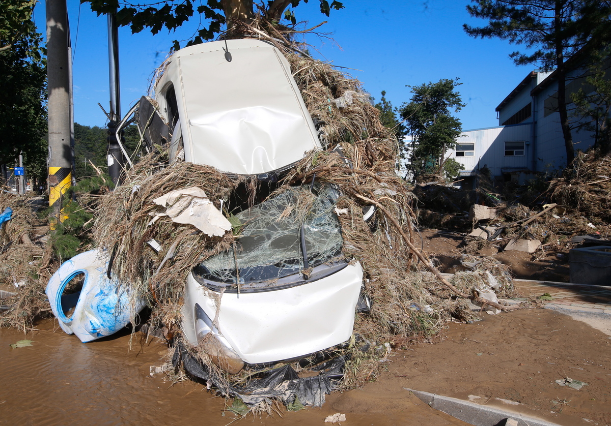 Καθώς πέρναγε από τη χώρα στις αρχές της εβδομάδας ο τυφώνας, από τους ισχυρότερους που έπληξαν τη Νότια Κορέα τις τελευταίες δεκαετίες, πλημμύρισε δρόμους και κτίρια.