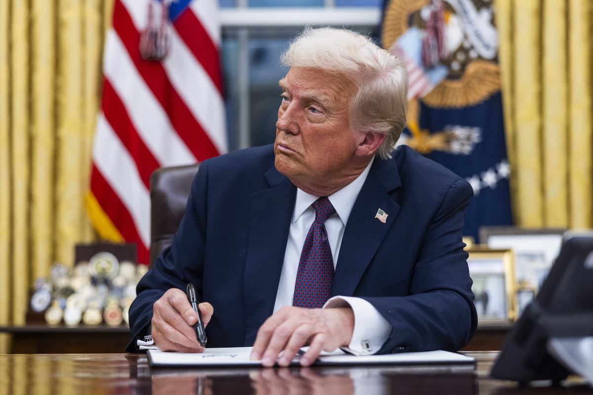 epa11840829 US President Donald Trump signs numerous executive orders, including pardons for defendants from the January 6th riots and a delay on the TikTok ban, on the first day of his presidency in the Oval Office of the White House in Washington, DC, USA, 20 January 2025. Trump, who defeated Kamala Harris to become the 47th president of the United States, was sworn in earlier in the day, though the planned outdoor ceremonies and events were cancelled due to extremely cold temperatures. EPA/JIM LO SCALZO / POOL