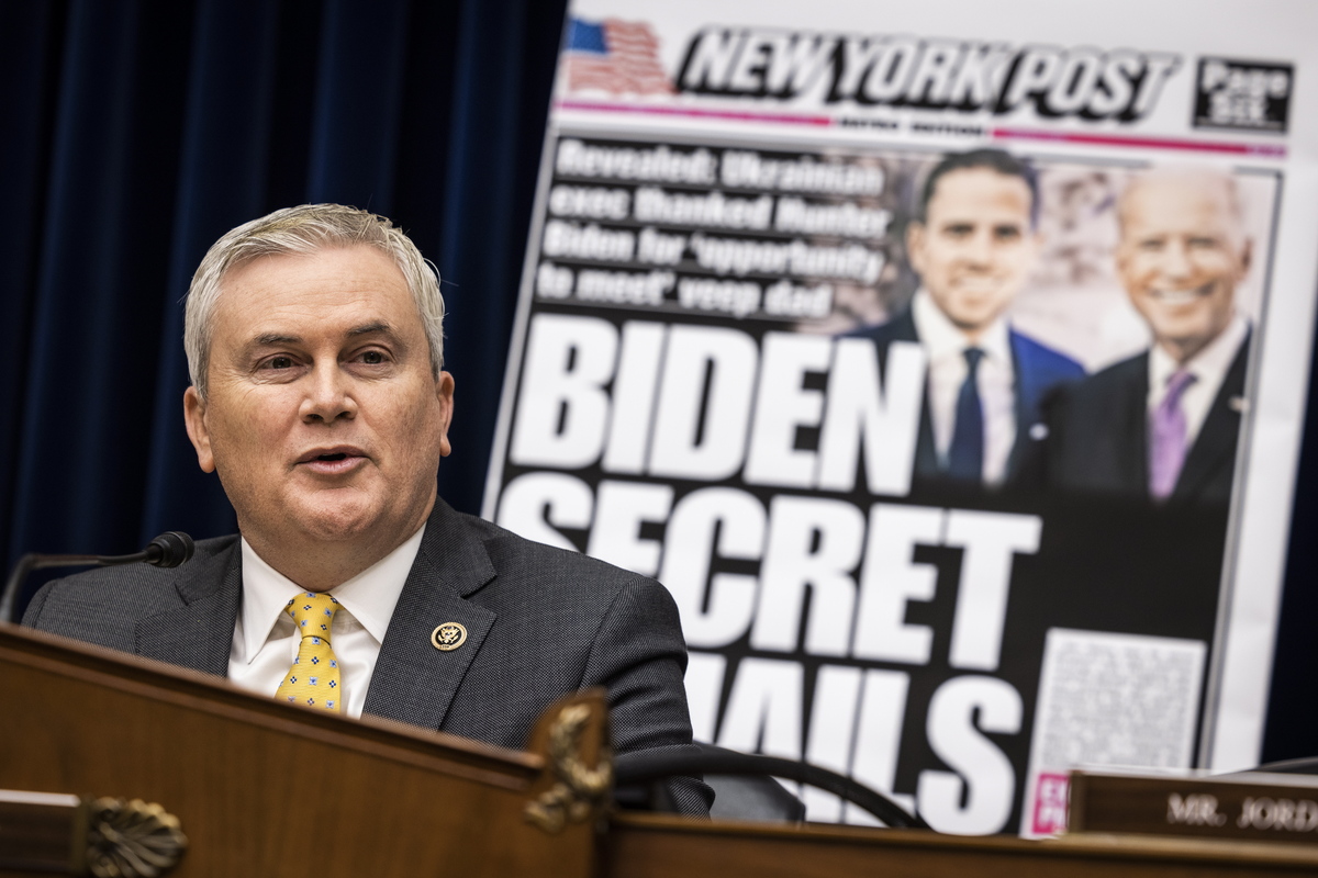 epa10454986 Republican Chairman of the House Oversight and Accountability Committee James Comer speaks during a hearing about Twitter's handling of a news story on Hunter Biden's laptop in the Rayburn House Office Building in Washington, DC, USA 08 February 2023. EPA/JIM LO SCALZO