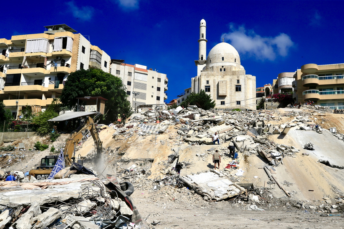 epa11633527 Search and rescue team members, together with locals, work to find bodies under the rubble of buildings destroyed in an Israeli airstrike the previous day in Ain el-Delb neighborhood, east of the port city of Sidon, southern Lebanon, 30 September 2024. According to the UN Humanitarian Coordinator in Lebanon, Imran Riza, the recent escalations in Lebanon have led to widespread destruction of homes and infrastructure across the country. At least 700 people have been killed, thousands have been injured, and nearly 120,000 people have been displaced in the past week.