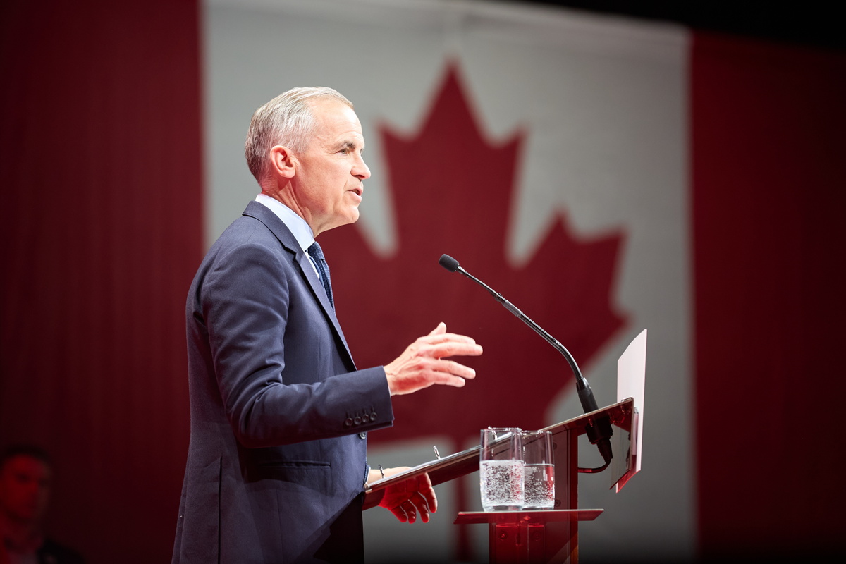 epa12061711 Canadian Prime Minister Mark Carney delivers his speech at the Liberal Party election night event in Ottawa, Ontario, Canada, 28 April 2025. Carney was elected prime minister after Canadians went to the polls earlier in the day. EPA/ERIC REID