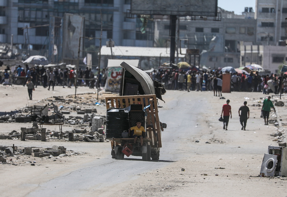 epa12420250 Internally displaced Palestinians evacuate Gaza City towards southern Gaza during an Israeli military operation in Gaza City, Gaza Strip, 01 October 2025. More than 66,000 Palestinians have been killed in the Gaza Strip since October 2023, according to the Palestinian Ministry of Health, and about 1,200 Israelis have been killed since the launch of an Israeli military campaign in response to a cross-border attack by Hamas on 07 October 2023. EPA/MOHAMMED SABER