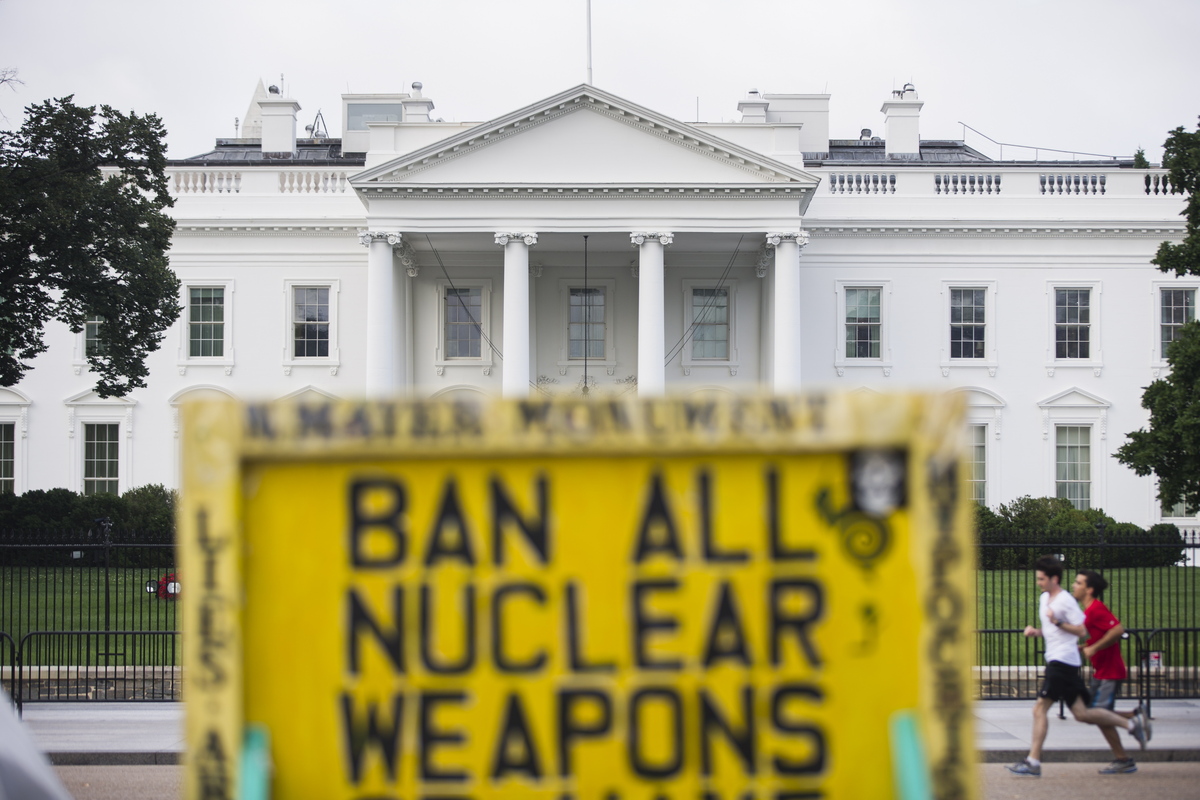 epa06720006 (FILE) - A protestor's sign is seen outside the White House after US President Barack Obama spoke to the nation about the Iran nuclear deal, hammered out in Vienna, Austria, between Iran and envoys from six nations in Washington, DC, USA, 14 July 2015 (reissued 08 May 2018). US president Donald Trump on 08 May 2015 announced that US will withdraw from the nuclear deal. Foreign ministers from six world powers and Iran finally achieved an agreement to prevent the Islamic republic from developing nuclear weapons, Western diplomats said in Vienna on 14 July 2015. EPA/JIM LO SCALZO