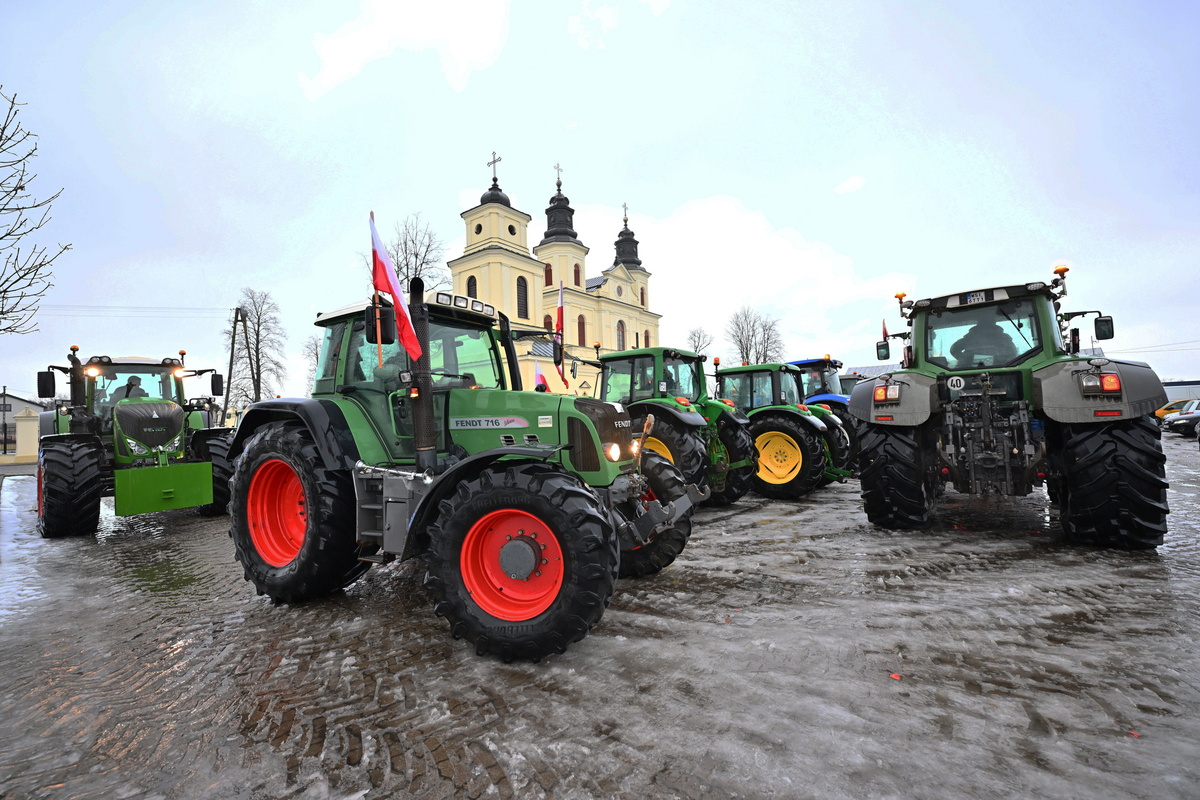 epaselect epa11101268 Tractors of Polish farmers are seen during a protest in Zbuczyn, central Poland, 24 January 2024. Farmers are staging nationwide protests in Poland under the slogan 'stop the current agricultural policy of the European Union', calling for restrictions on agricultural imports from Ukraine and non-EU countries. EPA/Przemyslaw Piatkowski POLAND OUT