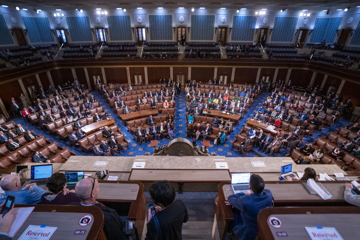 epa10391001 Members of the news media look on as voice votes are being cast in the House chamber on the third day of the House of Representatives trying to determine who will become the next Speaker of the House, on Capitol Hill in Washington, DC, USA 05 January 2023. After numerous rounds of voting House Republican Leader Kevin McCarthy has failed to secure enough votes to become House Speaker and faces serious opposition from his own Republican caucus, putting his bid for Speaker of the House in jeopardy. EPA/SHAWN THEW