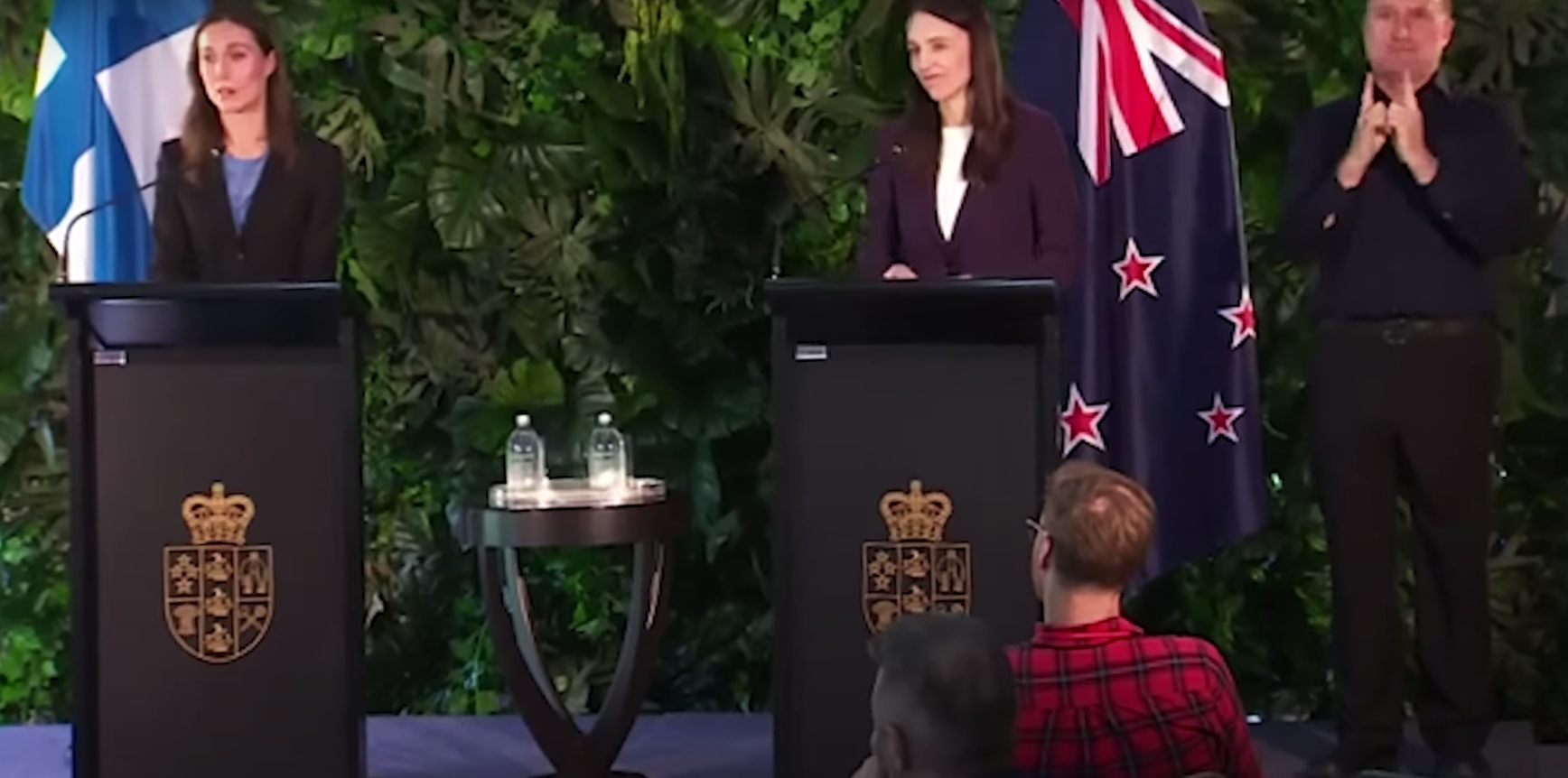 «Πολλοί άνθρωποι θα αναρωτιούνται μήπως συναντιέστε οι δυο σας μόνο και μόνο επειδή είστε σε κοντινή ηλικία και έχετε πολλά κοινά πράγματα», ρώτησε δημοσιογράφος από το ραδιοφωνικό δίκτυο Newstalk ZB της Νέας Ζηλανδίας, με την πρωθυπουργό της χώρας να τον κοιτά έκπληκτη και απορημένη.