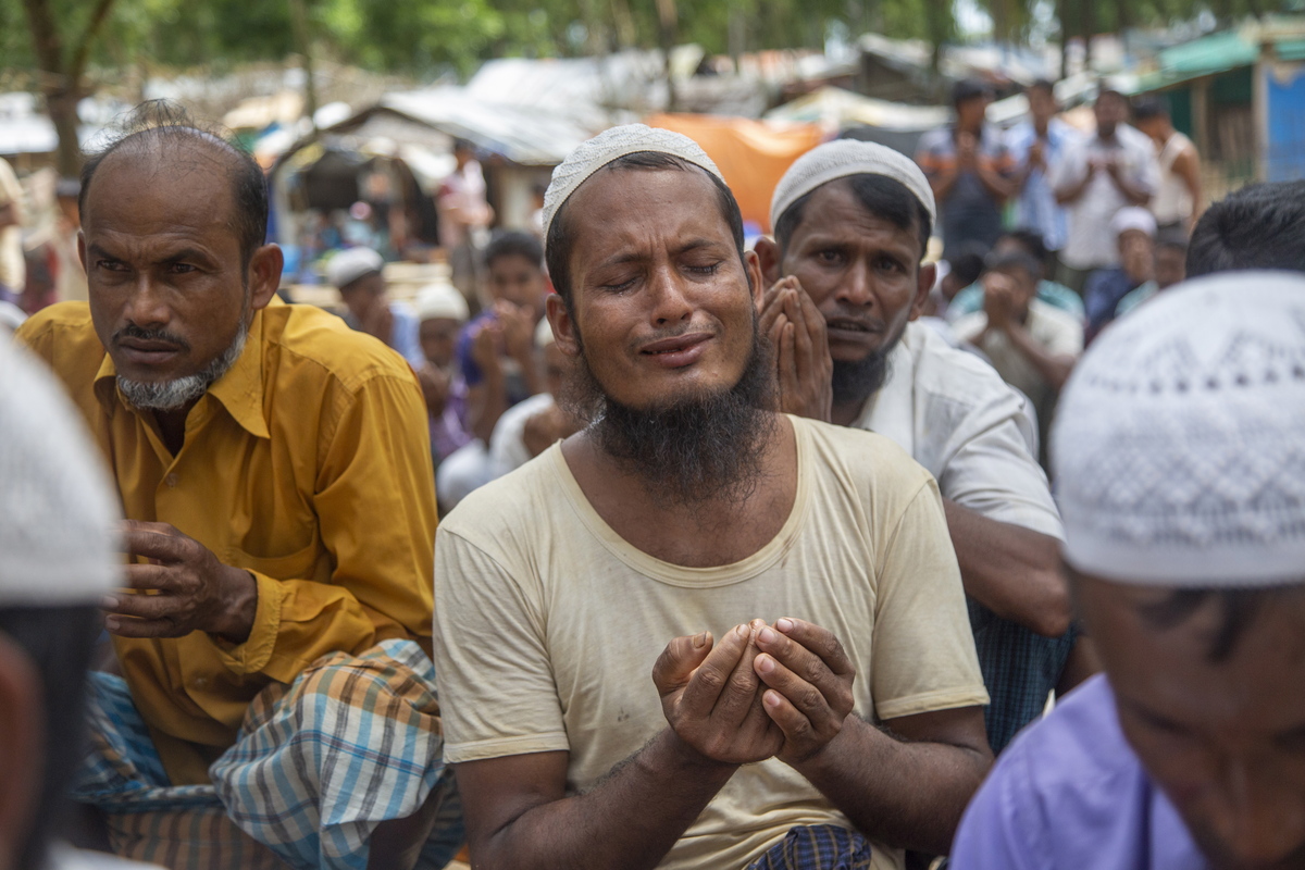 epa10137496 Rohingya refugees pray as they take part in a protest held to mark the five year anniversary of the mass migration of Rohingya refugees from Myanmar to Bangladesh, at a makeshift camp in Kutubpalang, Ukhiya, Cox Bazar district, Bangladesh, 25 August 2022. According to the United Nations High Commissioner for Refugees (UNHCR), more than 900,000 Rohingya refugees live in Bangladesh and the Cox's Bazar region after they fled Myanmar. The Rohingyas marked on 25 August the five years anniversary of their exodus by holding series of protests demanding their repatriation and justice. Bangladesh’s Foreign Minister AK Abdul Momen, said earlier in June that Bangladesh handed over a list of 830,000 Rohingyas containing biometric data but the Myanmar authorities verified only 58,000 of them and there is not much progress in the Rohingya repatriation. Attempts for the repatriation of refugees from Bangladesh to Myanmar have failed as an eventual return home is so far without a guarantee of citizenship and security. EPA/MONIRUL ALAM