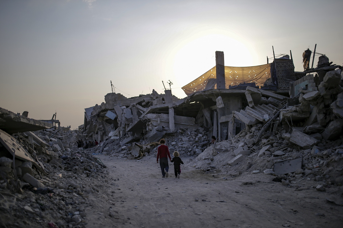 epa12502874 Children amongst the rubble of destroyed buildings in Jabaliya, northern Gaza Strip, 04 November 2025, amid a ceasefire between Israel and Hamas. Following Israeli claims that Hamas violated the ceasefire, Prime Minister Netanyahu ordered military strikes on the Gaza Strip on 28 October. In response, Hamas announced it was postponing the planned handover of a recovered hostage's body, citing Israeli truce violations. EPA/MOHAMMED SABER