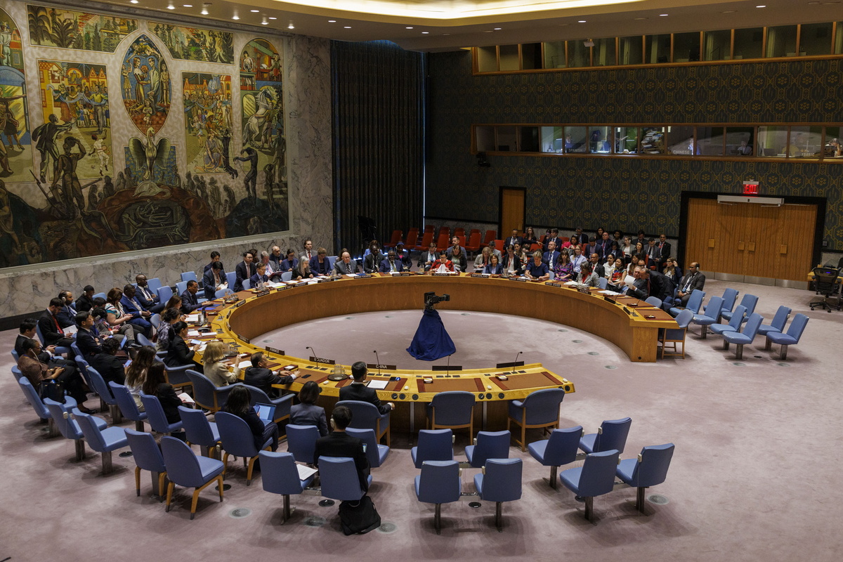 epa11402982 Ambassadors of the Security Council gather at UN Headquarters in New York, New York, USA, 10 June 2024. The council ultimately passed a resolution by the United States that supports a plan presented by US President Joe Biden for a ceasefire in the Israel-Gaza conflict. EPA/SARAH YENESEL