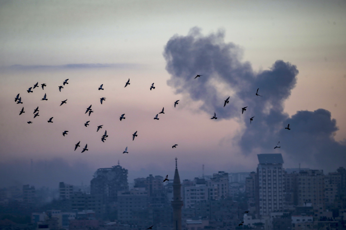 epa10923064 Smoke rises after Israeli air strikes on the northen Gaza Strip, 17 October 2023. Israel has warned all citizens of the Gaza strip to move to the south ahead of an expected invasion. More than 2,750 Palestinians and 1,300 Israelis have been killed according to the IDF and Palestinian health ministry, after Hamas militants launched an attack against Israel from the Gaza Strip on 07 October. EPA/MOHAMMED SABER