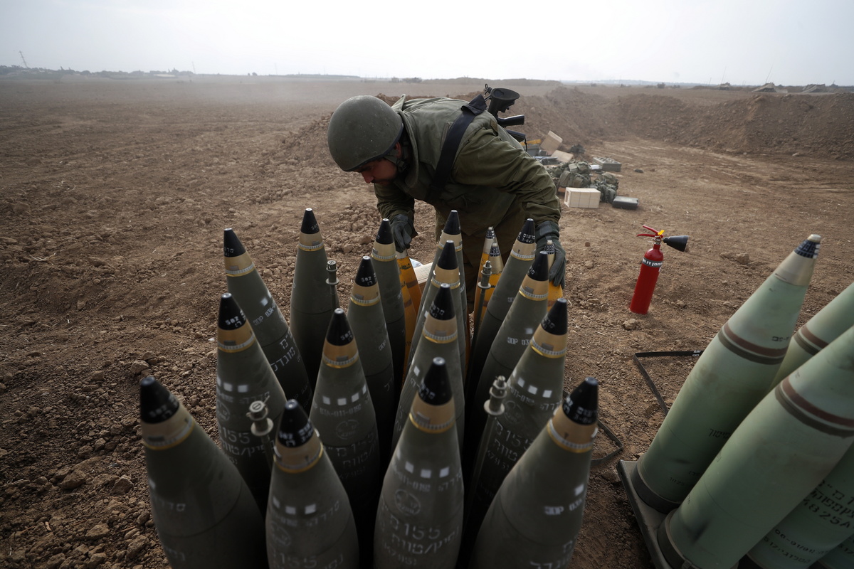 epa11638033 (FILE) - An Israeli soldier checks shells at an undisclosed area nea the border with Gaza, in southern Israel, 09 October 2023 (reissued 02 October 2024). Upcoming 07 October 2024, marks one year since the Palestinian militant group Hamas launched a surprise attack on Israel, killing 1,200, and one year since Israel began its war on Gaza, killing more than 41,000 and destroying the Palestinian enclave. On 07 October 2023, armed Palestinian groups led by Hamas launched a deadly assault on Israel, with rocket launches and thousands of militants breaching the Gaza-Israel security barrier to attack Israeli communities and military bases near Gaza and central Israel and taking dozens of hostages. Israel, then, officially declared a state of war against Hamas, setting the stage for a major military response in the strip. EPA/ATEF SAFADI