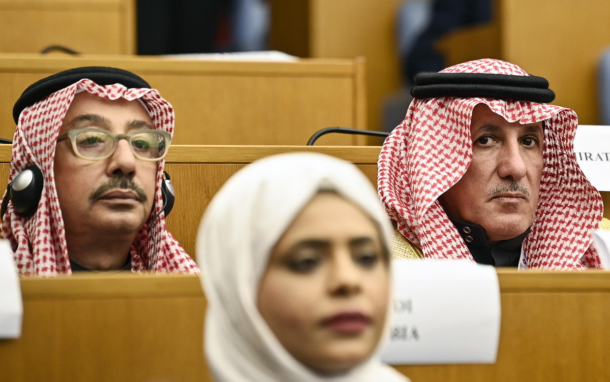 epa11912988 Delegates from Saudi Arabia attend the second day of the XIX Plenary Session of the Parliamentary Assembly of the Mediterranean (PAM), in Rome, Italy, 21 February 2025. EPA/RICCARDO ANTIMIANI