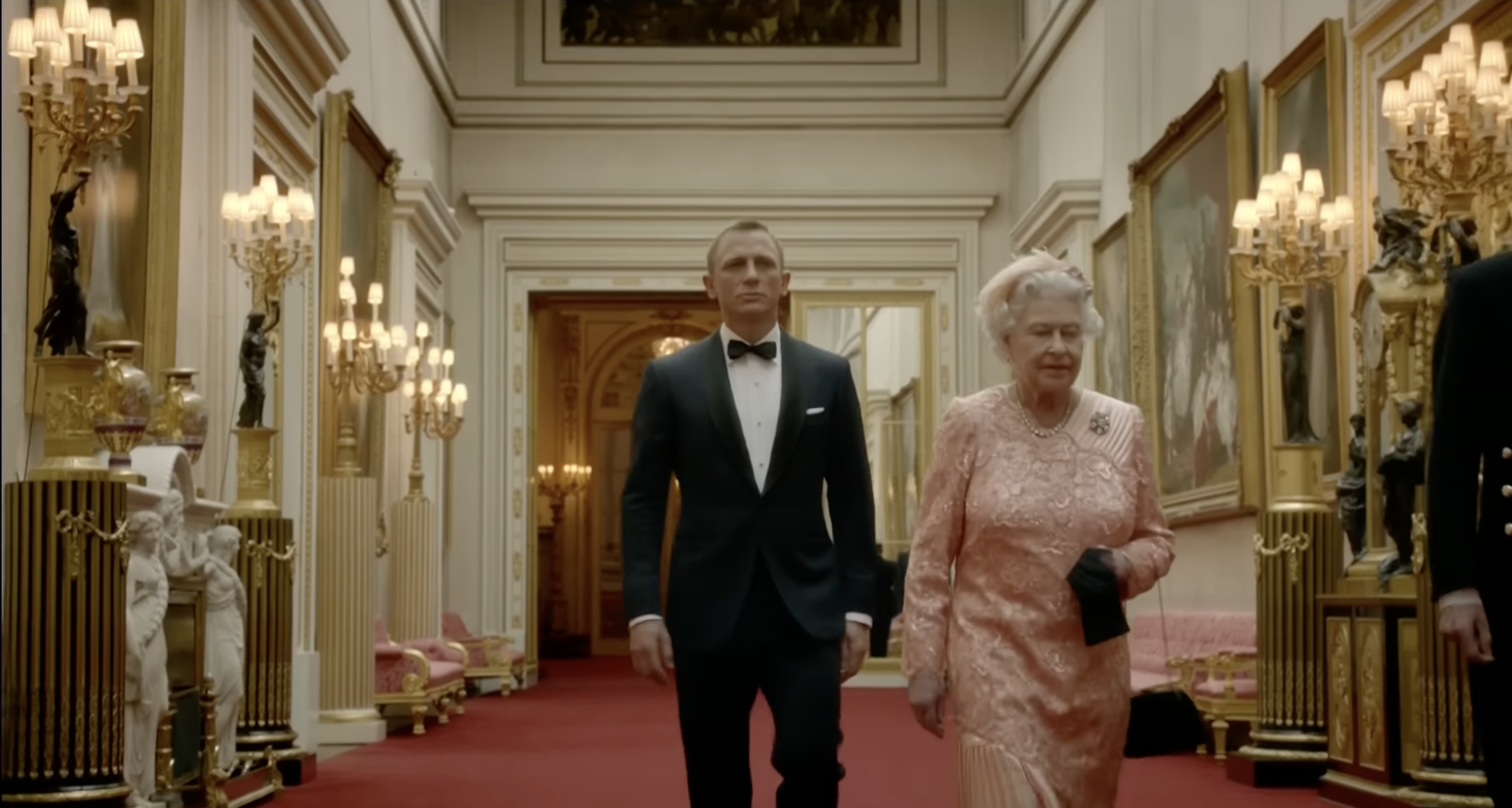 Kαι τότε είδαμε μια διαφορετική βασίλισσα Ελισάβετ, πιο διασκεδαστική, μαζί με τον Ντάνιελ Κρεγκ στο ρόλο του Τζέιμς Μποντ. Κατά τη διάρκεια του σκετς, ο φανταστικός κατάσκοπος συνοδεύει το κορίτσι του, τη βασίλισσα από τα ανάκτορα του Μπάκιγχαμ στους Ολυμπιακούς Αγώνες με ένα ελικόπτερο.