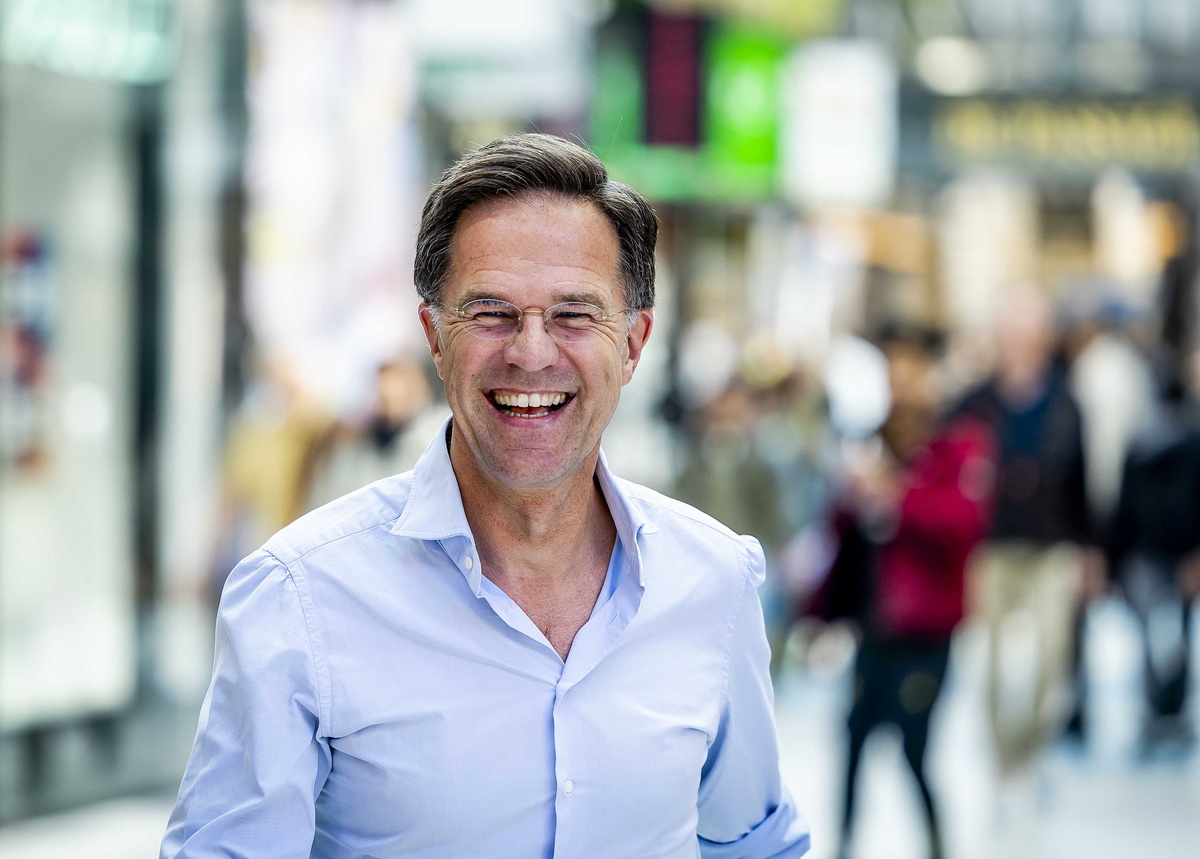 epa11391732 Outgoing Dutch Prime Minister Mark Rutte of the People's Party for Freedom and Democracy (VVD) campaigns for the European Parliament elections during a visit to the city center of The Hague, Netherlands, 05 June 2024. This year's European Parliament elections are scheduled across EU member states from 06 to 09 June 2024. EPA/REMKO DE WAAL