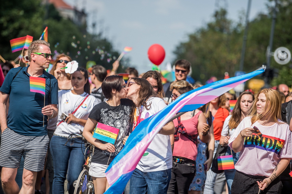 epa06871927 Participants attend the Budapest Pride march of the LGBT community in Budapest, Hungary, 07 July 2018. EPA/ZOLTAN BALOGH HUNGARY OUT
