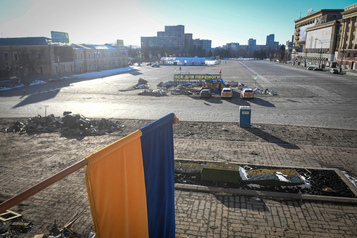 epa09839643 A view of a destroyed building of the Kharkiv District Council in Kharkiv, Ukraine, 20 March 2022. Russian troops entered Ukraine on 24 February resulting in fighting and destruction in the country, and triggering a series of severe economic sanctions on Russia by Western countries. EPA/Andrzej Lange POLAND OUT