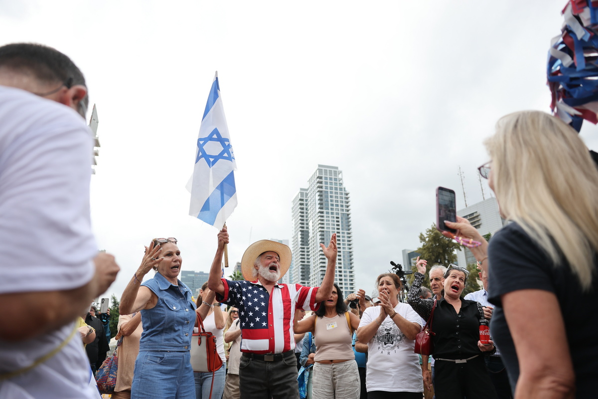 Ενθουσιώδης ήταν η ατμόσφαιρα και στο Τελ Αβίβ, στην πλατεία των Ομήρων όπου οι οικογένειες των απαχθέντων από τη Χαμάς ζητούν την επιστροφή των αγαπημένων τους.