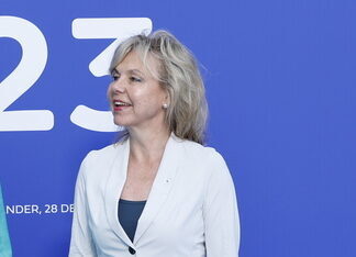 epa10773145 A handout photo made available by the Pool PEUE of acting Spanish Science and Innovation Minister, Diana Morant (L), greeting Sabine Doring-Feger, German State Secretary at the Federal Ministry of Education and Research (BMBF), upon her arrival at the informal meeting of Competitiveness Ministers (Research) held in the framework of 6-month Spanish Presidency of European Council, at Palacio de la Magdalena palace, in Santander, northern Spain, 28 July 2023. EPA/Miguel Tona / HANDOUT IMAGE TO BE USED ONLY IN RELATION TO THE STATED EVENT * MANDATORY CREDIT HANDOUT EDITORIAL USE ONLY/NO SALES
