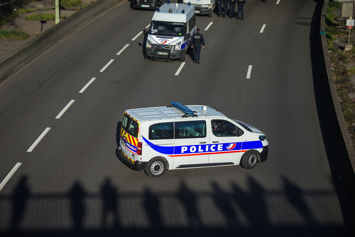 epaselect epa09749359 French police forces stand at a checkpoint on the Paris ring road to prevent members of the 'Freedom Convoy' from entering Paris, France, 12 February 2022. Paris police have prohibited the convoy, as announced by the capital’s prefect on 10 February. A series of convoy demonstrations has been taking place in France to call for the lifting of all Covid-19-related restrictions and mandates, in light of the ongoing protest in Canada, where truck drivers have been rallying against the government-imposed mandatory Covid-19 vaccine to enter the country. EPA/CHRISTOPHE PETIT TESSON