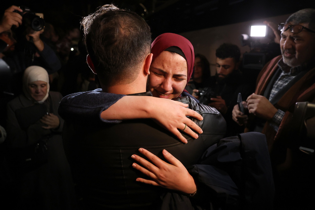 epa11002777 Released Palestinian prisoners from the Ofer Israeli military prison are greeted by relatives as they arrive in Ramallah, West Bank, 30 November 2023. On 29 November, the Israel-Hamas ceasefire deal entered its sixth day with about 81 Hamas held hostages and 180 Palestinian prisoners released, as more talks are ongoing to extend the deal. More than 15,000 Palestinians and at least 1,200 Israelis have been killed, according to the Gaza Government media office and the Israel Defense Forces (IDF), since Hamas militants launched an attack against Israel from the Gaza Strip on 07 October, and the Israeli operations in Gaza and the West Bank which followed it. EPA/ALAA BADARNEH