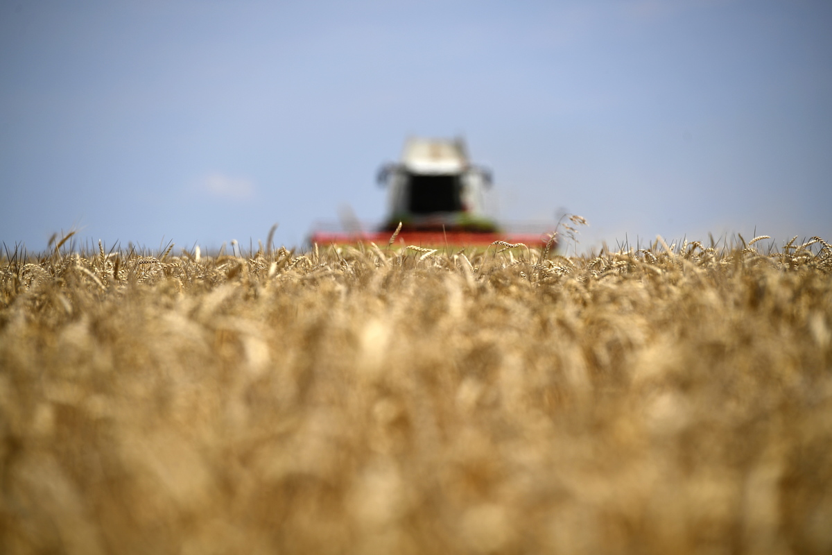 epa10737415 A harvester is seen in the field during harvest near the town of Shabla, Bulgaria, 10 July 2023. Bulgaria has exported over 4 million tons of wheat to over 30 countries around the world. Despite the fact that the European Commission (EC) approved an additional EUR 9.77 million in aid for Bulgarian grain, after having already approved EUR 16 million, there is about 30 percent more grain in warehouses than in previous years. Earlier this year, the EC decided that until 15 September, grain from Ukraine cannot be sold on the market of Bulgaria, Romania, Slovakia and Hungary, the Ministry of Agriculture of Bulgaria said. EPA/VASSIL DONEV