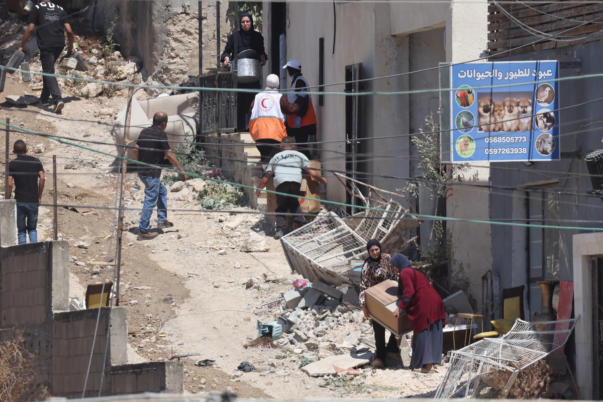 epa12209800 Palestinians carrying their belongings walk along a road during an Israeli military operation at Tulkarem refugee camp, near the West Bank city of Tulkarem, 02 July 2025. According to the Palestinian news agency Wafa, Israeli forces continued their military operation in the city of Tulkarem and its refugee camp demolishing dozens of residential buildings. EPA/ALAA BADARNEH