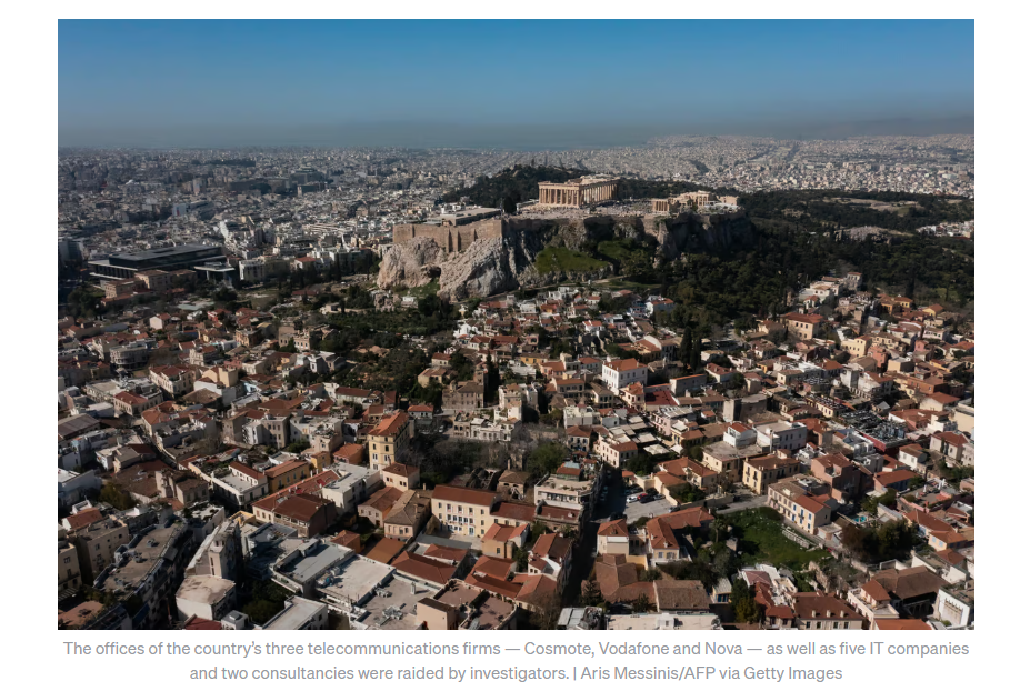 Τα γραφεία των τριών εταιρειών τηλεπικοινωνιών της χώρας — Cosmote, Vodafone και Nova — καθώς και πέντε εταιρειών πληροφορικής και δύο συμβούλων δέχτηκαν έφοδο από ερευνητές της ελληνικής επιτροπής ανταγωνισμού τον περασμένο μήνα. Η Ευρωπαϊκή Εισαγγελία (EPPO) έχει επίσης ξεκινήσει έρευνα, επιβεβαίωσε.