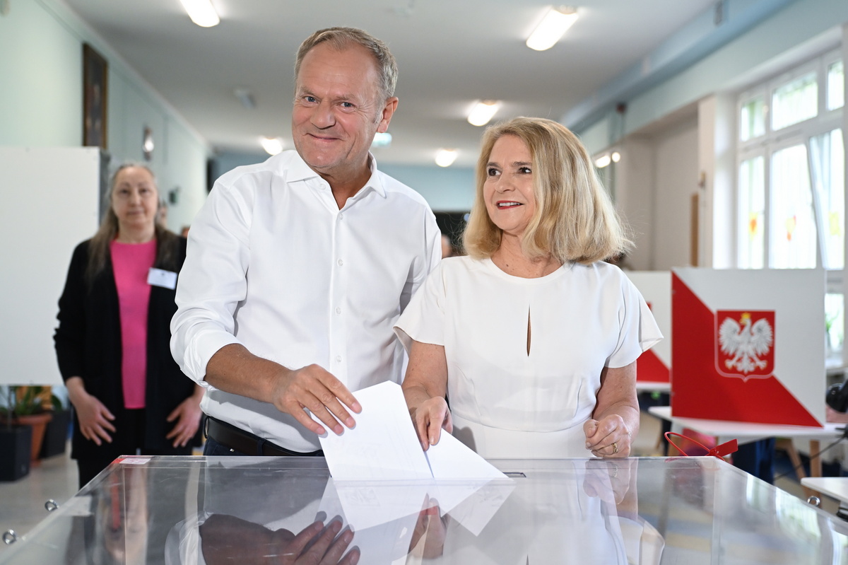 epaselect epa12148785 Prime Minister Donald Tusk (L) with his wife Malgorzata (R) cast their votes at a polling station in Sopot, Poland, 01 June 2025. Voting in the second round of the presidential election is underway, with voting silence in effect until the polls close. The election began at 7 a.m. and is scheduled to end at 9 p.m. Poles will elect their next president for a five-year term. EPA/ADAM WARZAWA POLAND OUT