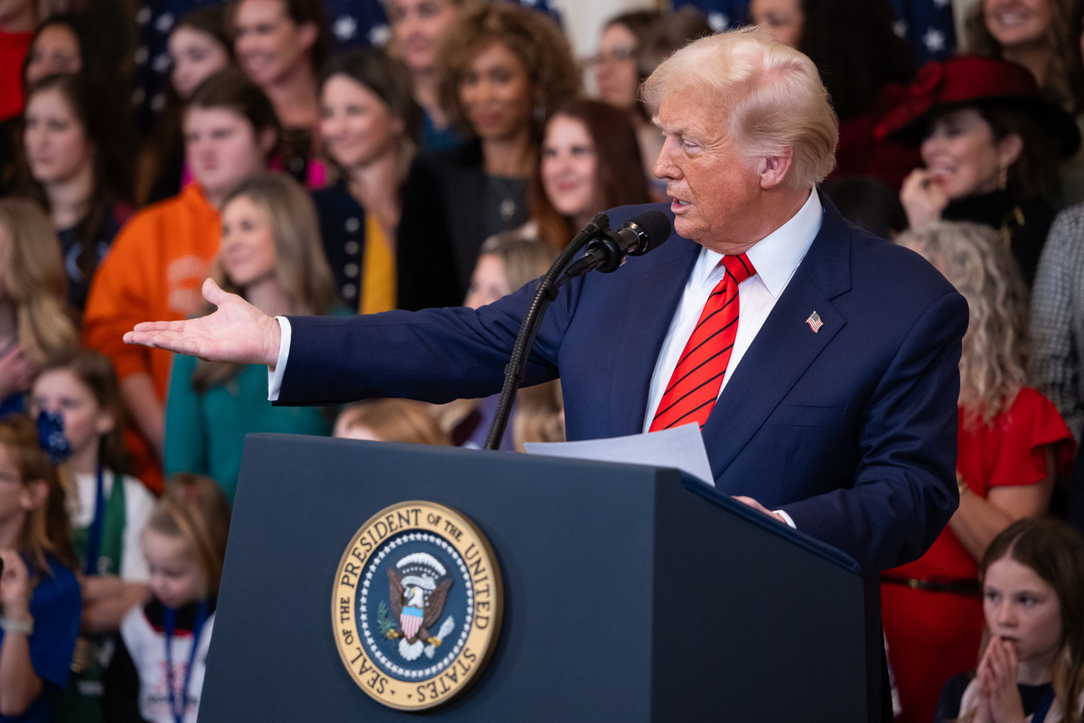 epa11877783 US President Donald Trump speaks during an event before signing an executive order related to transgender athletes in women's sports, at the White House in Washington, DC, USA, 05 February 2025. EPA/FRANCIS CHUNG / POOL