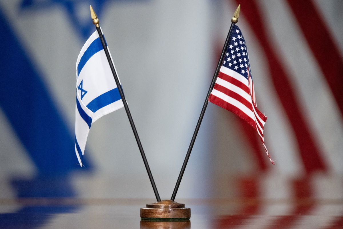 epa11436557 Flags of Israel and the United States are on the table during the meeting of US Secretary of Defense Lloyd Austin and Israeli Defense Minister Yoav Gallant (both not pictured), at the Pentagon in Arlington, Virginia, USA, 25 June 2024. US Secretary of Defense Lloyd Austin met with Israeli Defense Minister Yoav Gallant at the Pentagon and discussed the ongoing situation in Gaza and Israeli military operations in the region. EPA/MICHAEL REYNOLDS