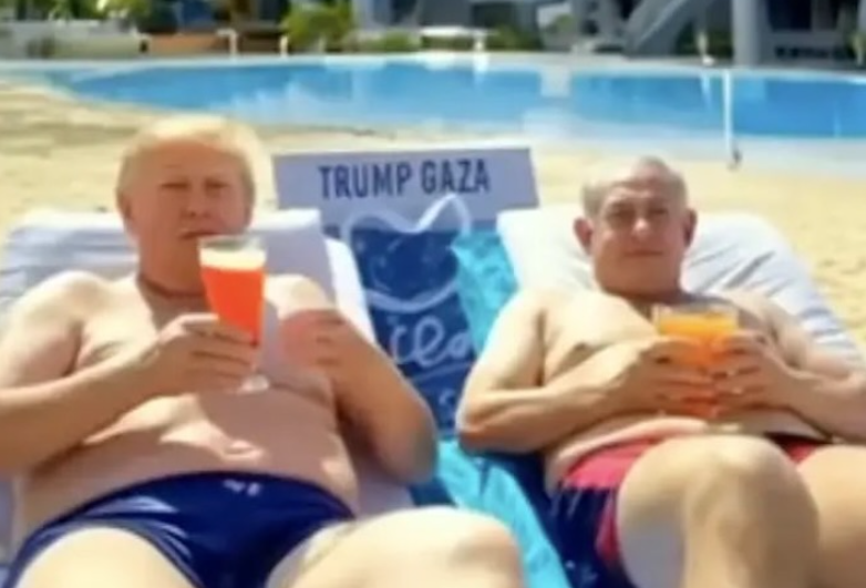 Ο Αμερικανός πρόεδρος Ντόναλντ Τραμπ μοιράστηκε ένα βίντεο που δημιουργήθηκε από την Τεχνητή Νοημοσύνη (AI) που απεικονίζει μια εθνοκαθαρισμένη Γάζα, με πολυτελείς πύργους και χρυσά αγάλματα Τραμπ, πάρτι του Έλον Μασκ και τελειώνει με τον ίδιο και τον Ισραηλινό πρωθυπουργό Μπέντζαμιν Νετανιάχου να πίνουν κοκτέιλ στην παραλία.