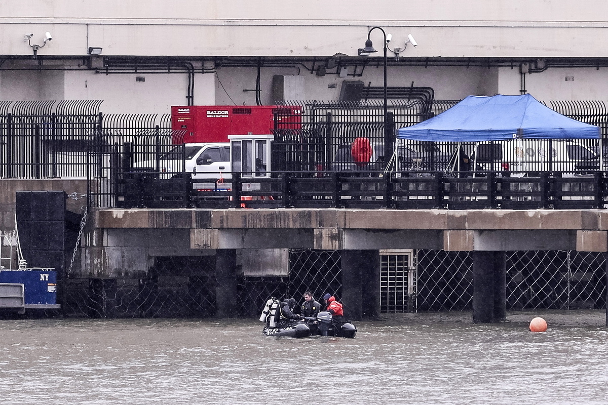 epa12025727 Divers from the New York City Police Department search the waters where a tourist helicopter crashed into the Hudson River in Jersey City, New Jersey, USA, 11 April 2025. According to the United States' National Transportation Safety Board (NTSB), six people were killed when a Bell 206 helicopter operated by the company New York Helicopters plunged into the river on 10 April. EPA/SARAH YENESEL