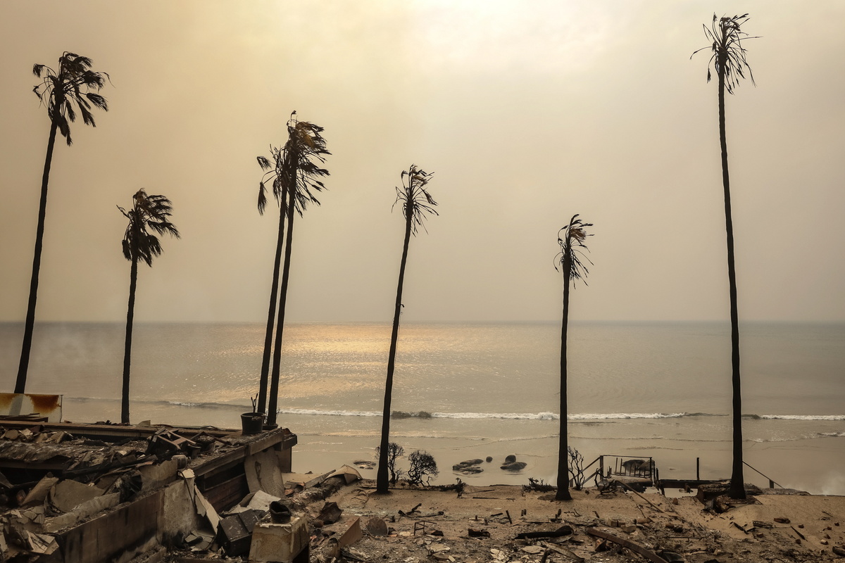 epaselect epa11813742 The remains of homes destroyed by the Palisades wildfire on a beach in Malibu, California, USA, 08 January 2025. According to data from California Department of Forestry and Fire Protection, CAL FIRE, multiple wildfires are burning across thousands of acres and forced tens of thousands of evacuations in the Los Angeles area. EPA/ALLISON DINNER