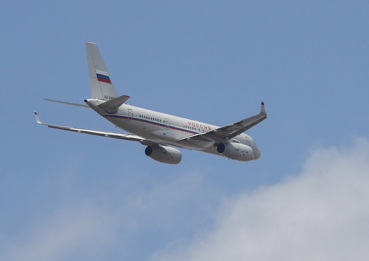 epa07825346 A Russian plane leaves the Boryspil International Airport with freed Russian prisoners on a board near of Kiev, Ukraine, 07 September 2019. The 35 political prisoners and Ukrainian sailors were freed as part of a Russia-Ukraine prisoner swap. The swap list includes 24 sailors captured by Russia in the Kerch Strait, and 11 more convicts, including Ukrainian film director Oleg Sentsov. EPA/SERGEY DOLZHENKO