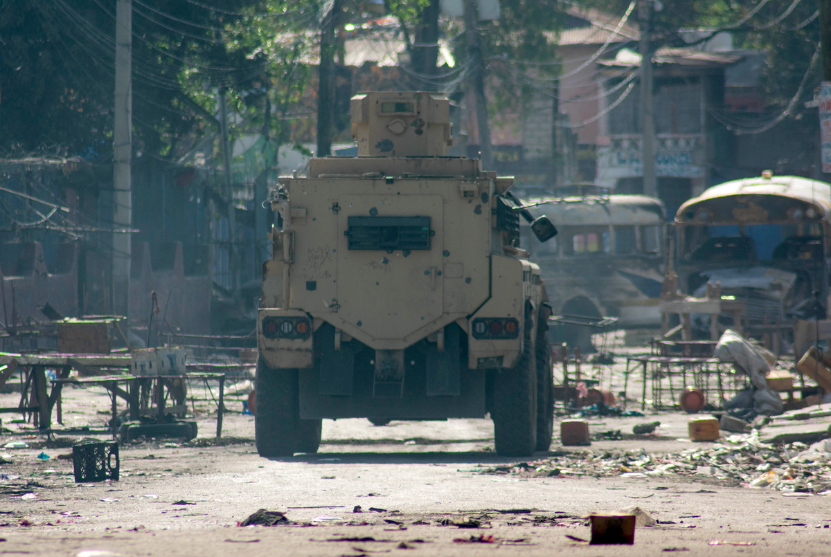epa11195653 An armored car patrols the streets during the ongoing civil unrest in the city center in Port-au-Prince, Haiti, 02 March 2024. Sporadic shootings and acts of looting continue in several neighborhoods in the metropolitan area of Port-au-Prince, creating a situation of constant fear, uncertainty, and alertness in the population. EPA/SIFFROY CLARENS