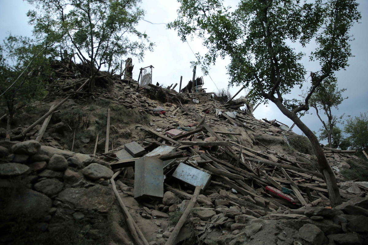 epa12344221 A view of damaged houses after an earthquake in Kunar, Afghanistan, 01 September 2025. At least 800 people have been killed and some 2,000 injured after a shallow magnitude-6.0 earthquake and several aftershocks shook Nangarhar and Kunar in eastern Afghanistan overnight, officials reported on 01 September 2025. EPA/SAMIULLAH POPAL
