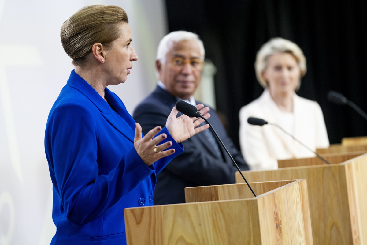 epa12422248 Danish Prime Minister Mette Frederiksen (L), President of the European Commission Ursula von der Leyen (R), and President of the European Council Antonio Costa (C) hold a closing press conference of an informal summit in the Danish Parliament at Christiansborg Castle in Copenhagen, Denmark, 01 October 2025. Denmark is hosting an informal summit for EU heads of state and government at Christiansborg on 01 and 02 October. EPA/IDA MARIE ODGAARD DENMARK OUT