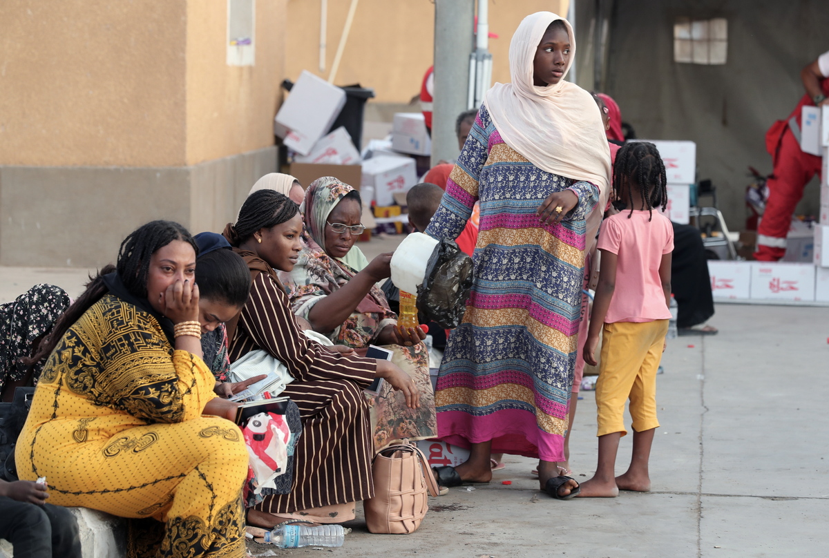 epa10635320 People fleeing from Sudan arrive at the Qastal Land Port crossing between Egypt and Sudan, near Abu Simbel, southern Egypt, 17 May 2023. According to the United Nations, some 200,000 people have fled Sudan since 15 April after an armed conflict erupted between the Sudanese military and the RSF (Rapid Support Forces) militia. EPA/KHALED ELFIQI
